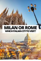 In general, choose Milan if you want a cosmopolitan vibe with luxury shopping and a more compact city centre. On the other hand, choose Rome if you have more time to devote and want to see sites like the Colosseum, the Spanish Steps and the Sistine Chapel.