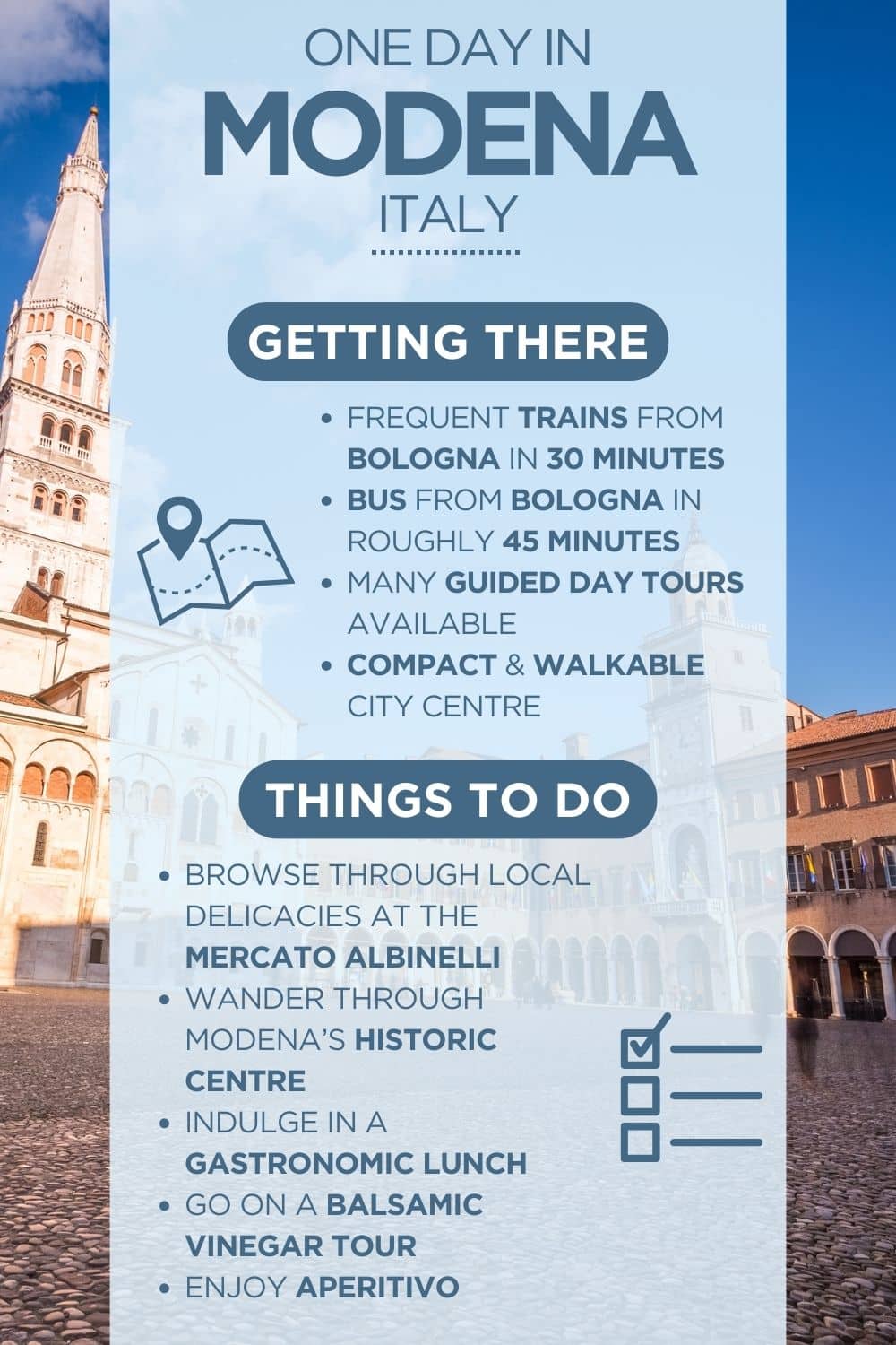 We are heading to Bologna for a short break in a couple of weeks and would like to visit Modena. I think the itinerary would be perfect for us.