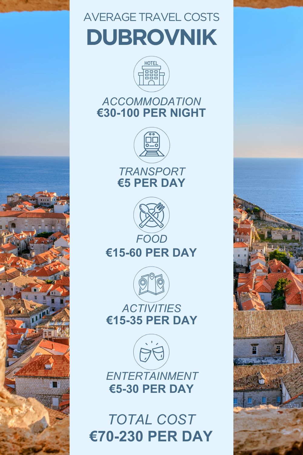 An infographic outlining the average daily costs for a trip to Dubrovnik