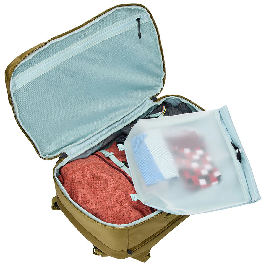 If you’re looking for a roomy backpack that is suitable for carry-on travel, then this is a great choice! Coming in a beautiful Nutria colour. This sturdy bag is a roomy 40 litres. It has a padded sleeve that can accommodate a 16-inch laptop, there is a removable TPU pouch where you can stash dirty or damp belongings and there are compression straps inside to keep your items secured and compacted.