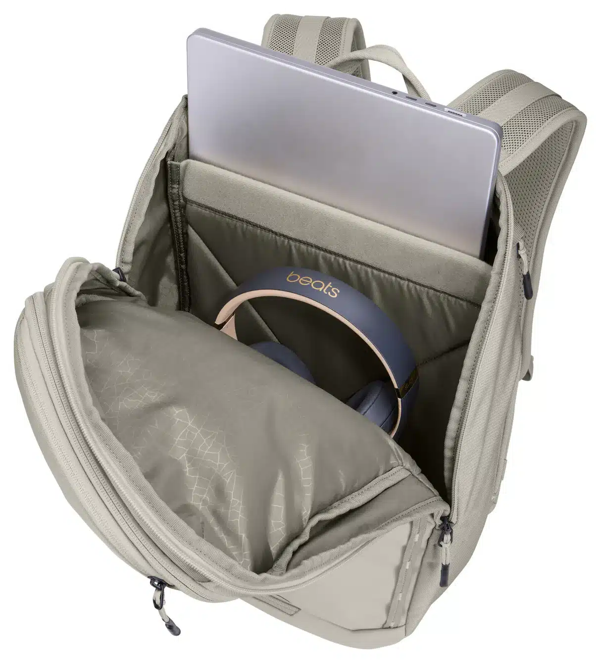 This cool, stylish backpack in Sand makes for an excellent travel daypack or carry-on. With a 26-litre capacity, it has a dual-access padded laptop sleeve, it’s made from 100% recycled material that is water resistant and it’s super comfortable to wear for hours at a time!