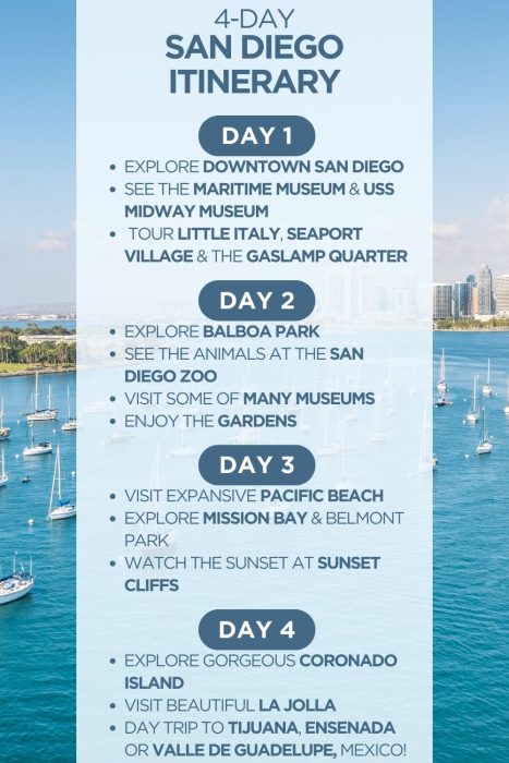 If you have more than four days, you can venture further afield, spend more time on the beach, or even take the time to visit cool places like the San Diego Zoo Safari Park!