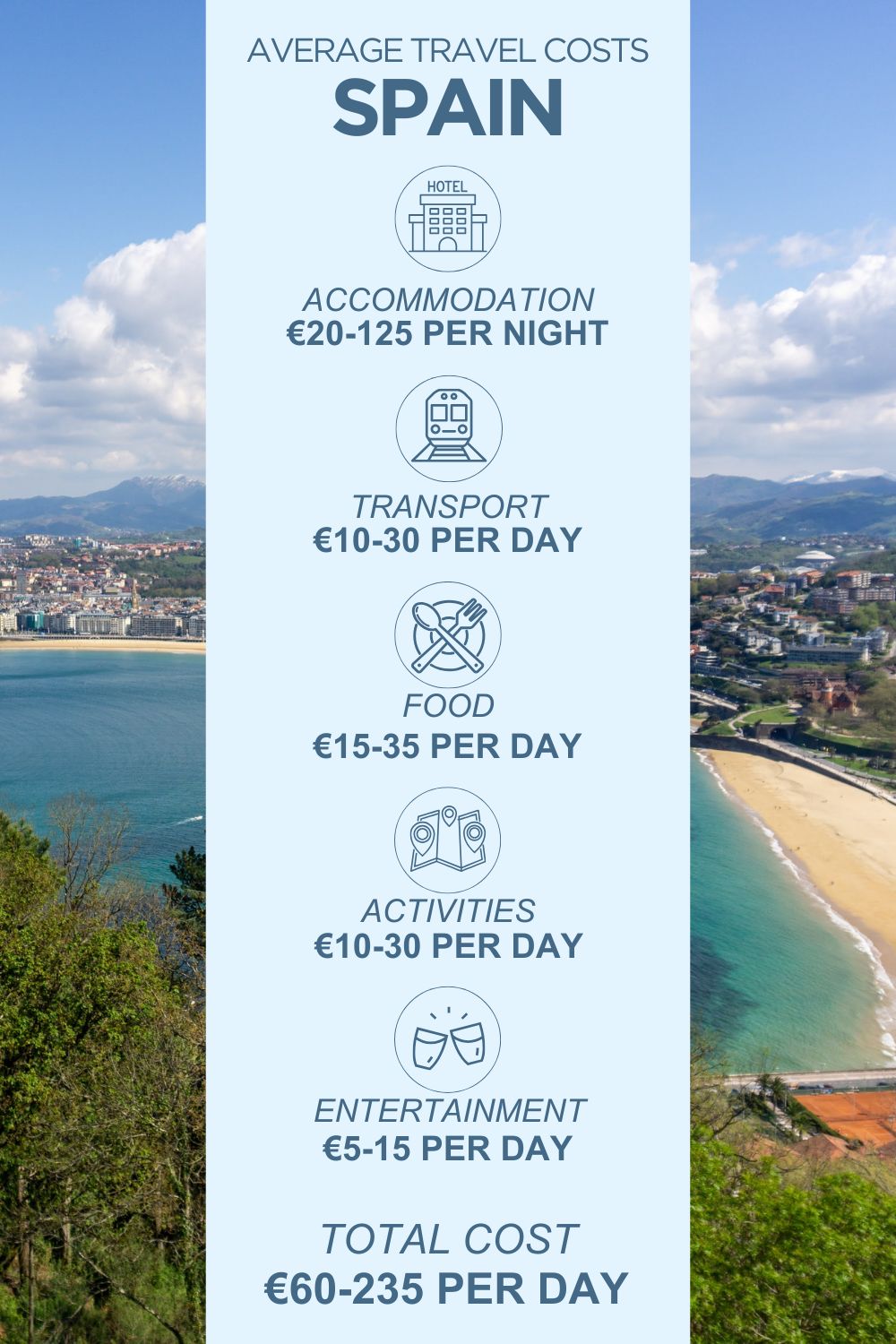 Spain can certainly seem more expensive if visiting popular places such as Barcelona or Madrid, however, it can still be a very affordable destination and travellers can expect to pay approximately €60-235 per person per day.