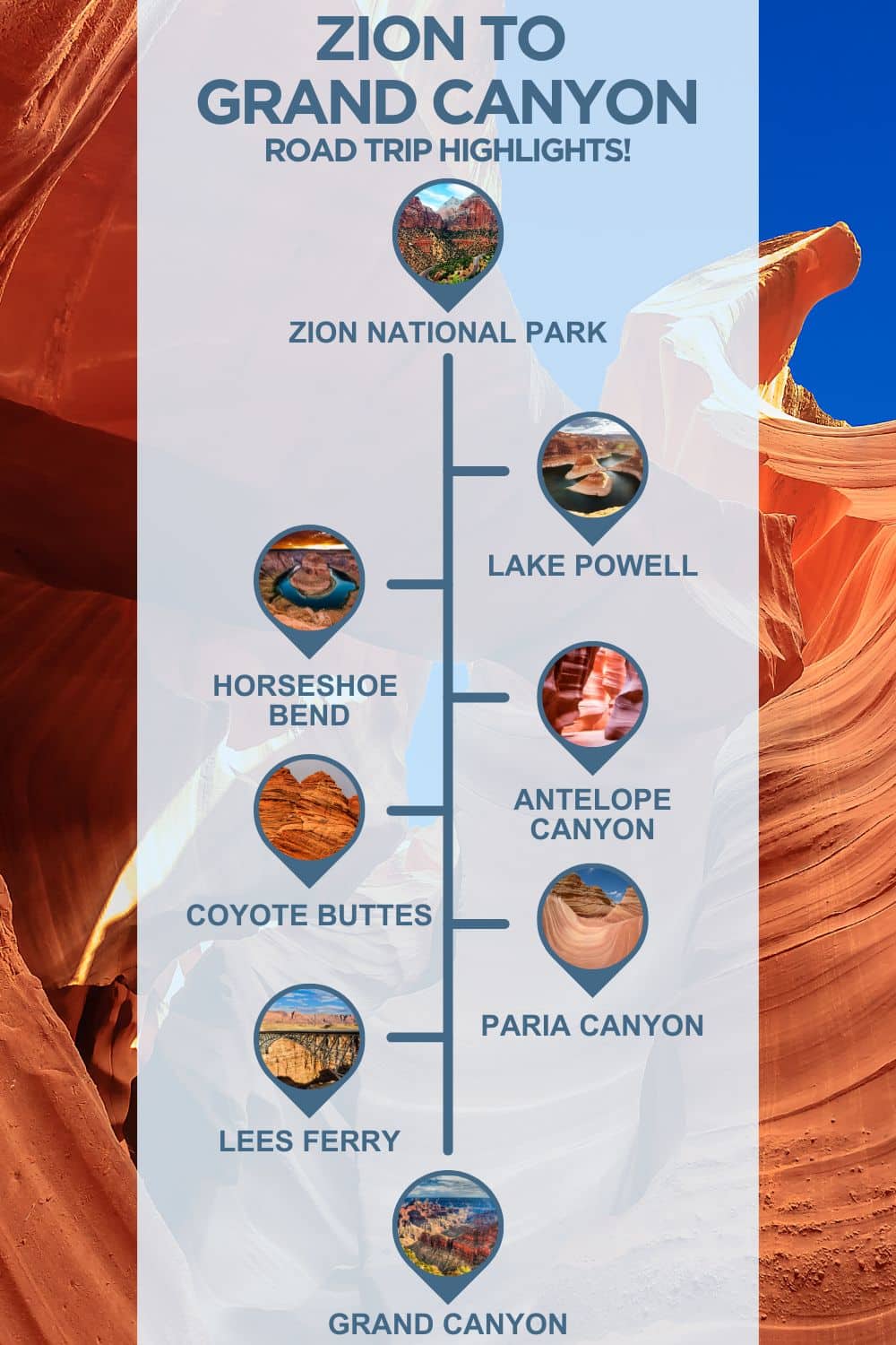 The only difficult thing about planning a road trip from Zion National Park to Grand Canyon National Park is figuring out which of the amazing sites to see in a short period of time! These stops will definitely make your drive through the Southwest a classic road trip adventure.