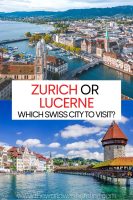 In general, choose Zurich if you want a big-city vibe with lots of things to do and easy access to other cities in Switzerland. On the other hand, choose Lucerne for a smaller, more intimate city that can serve as a gateway to the Alps.